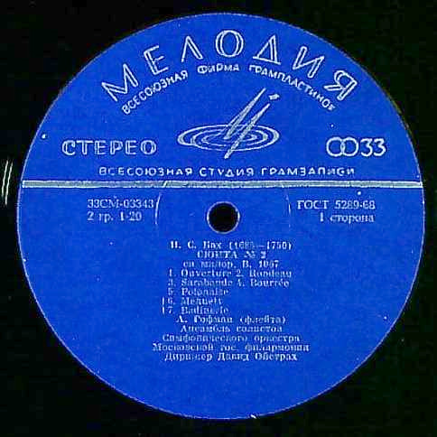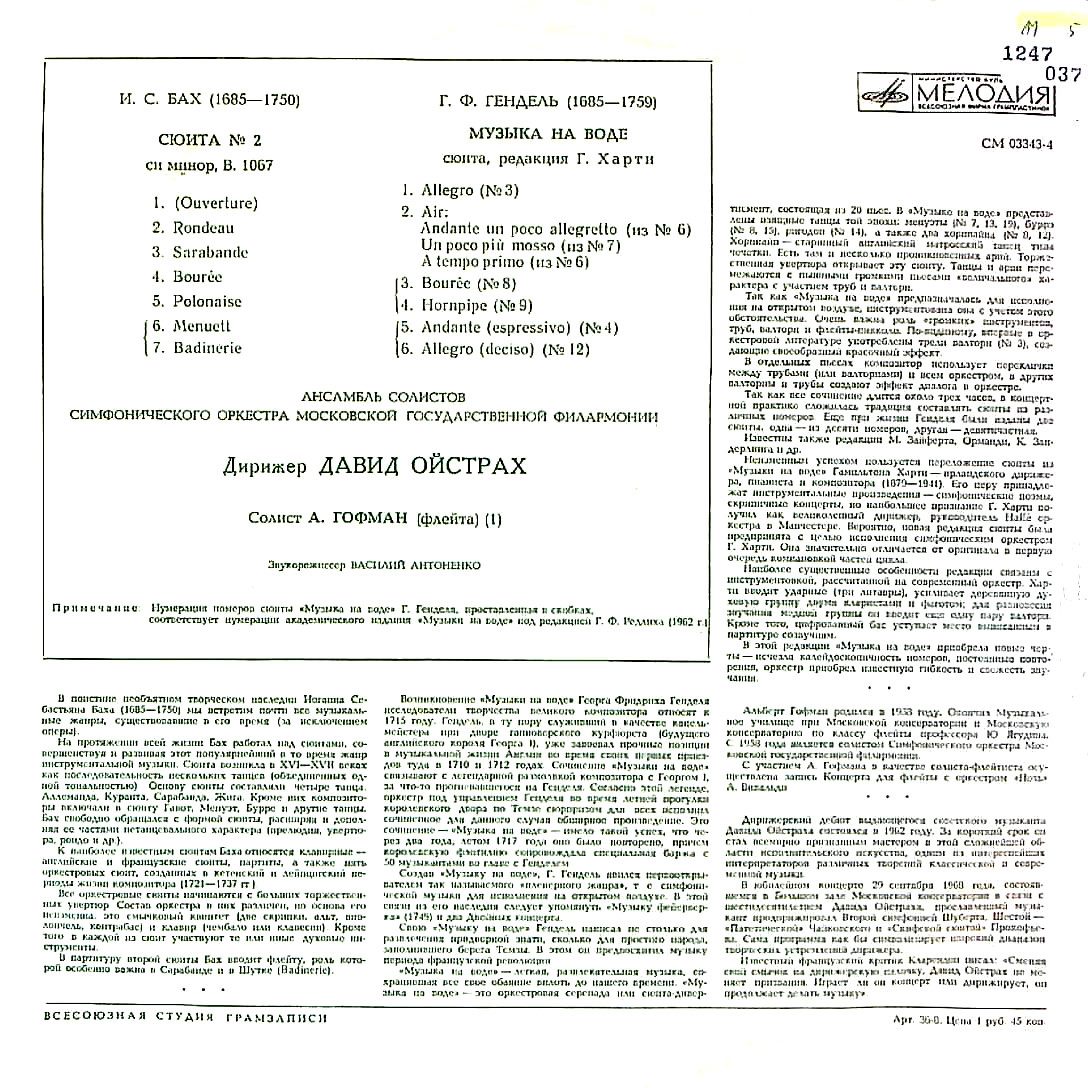 商品コード:1247-037n[MELODIYA] D.オイストラフ指揮モスクワso.メンバーEns. A.ホフマン(fl) / バッハ:組曲2番B.1067, ヘンデル:水上の音楽