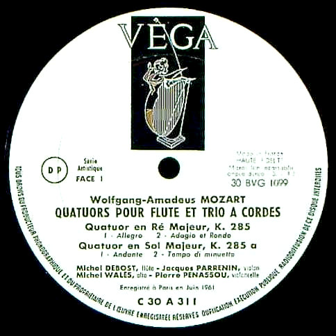 商品コード:1247-025b[VÉGA] M.デュボスト(fl) J.パルナン(vn) M.ウォレ(va) P.ペナスー(vc) / モーツァルト:Fl四重奏曲(4曲)/K.285, 285a, 285b, 298