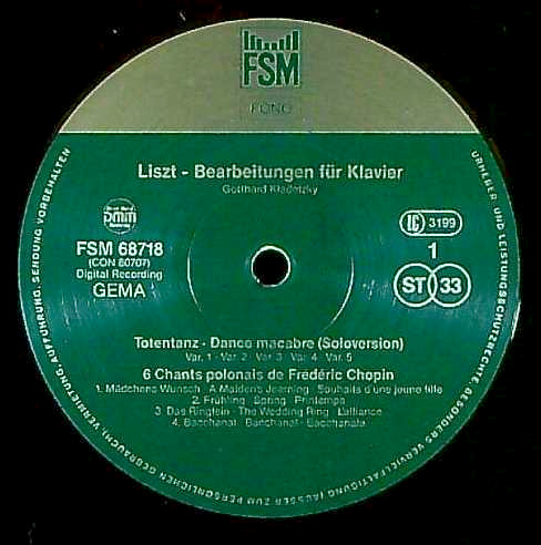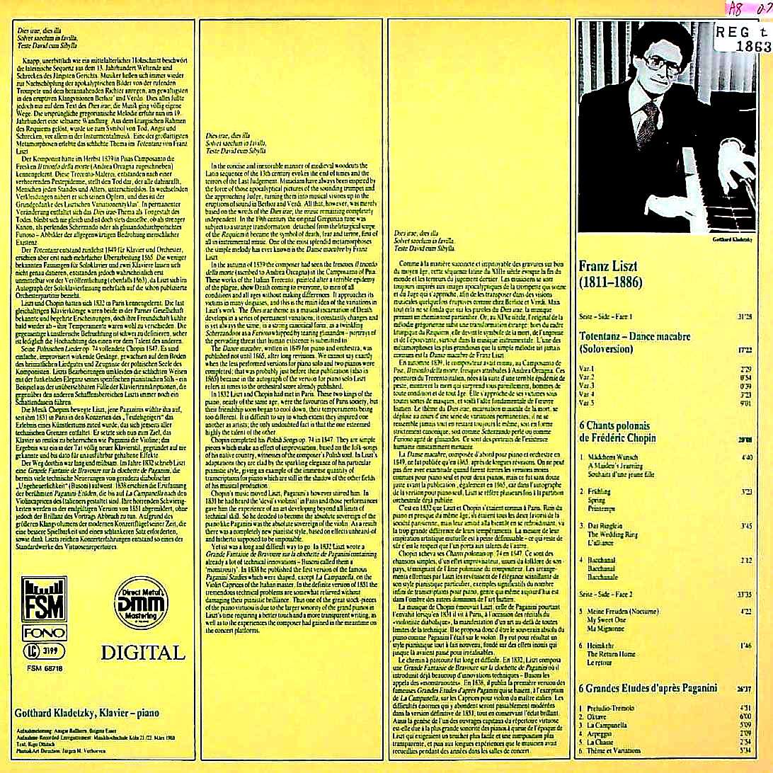 商品コード:REG-1863t[独FSM] G.クラデツキー(pf) / 「リスト・ピアノの為の編曲作品集」/リスト:死の舞踏(独奏版), 6つのポーランドの歌(ショパン) S.480(全曲), パガニーニ練習曲(全曲)