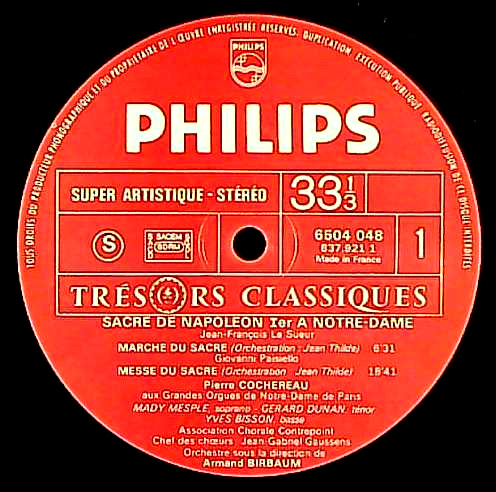 トピックス:仏赤/白4本線内溝GG, 仏見開両面コート, ノートルダム寺院録音, 仏PHILIPS:837 921 LY, 「Trésors Classiques」コレクション