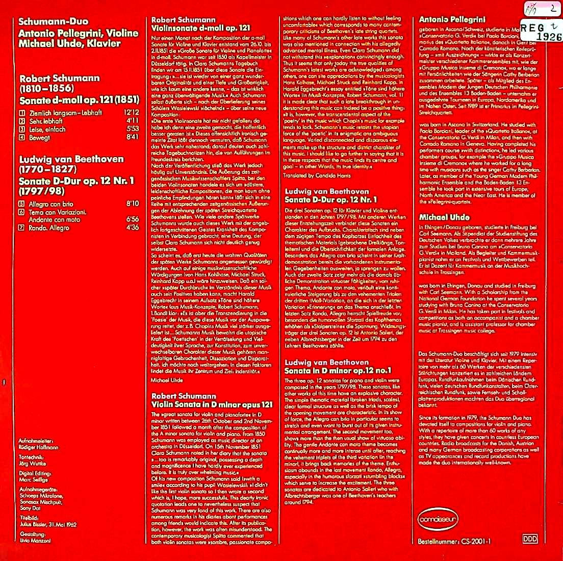 商品コード:REG-1926t[独connaisseur] A.ペレグリーニ(vn) M.ウーデ(pf) / シューマン:VnソナタOp.121, ベートーヴェン:Vnソナタ1番Op.12-1