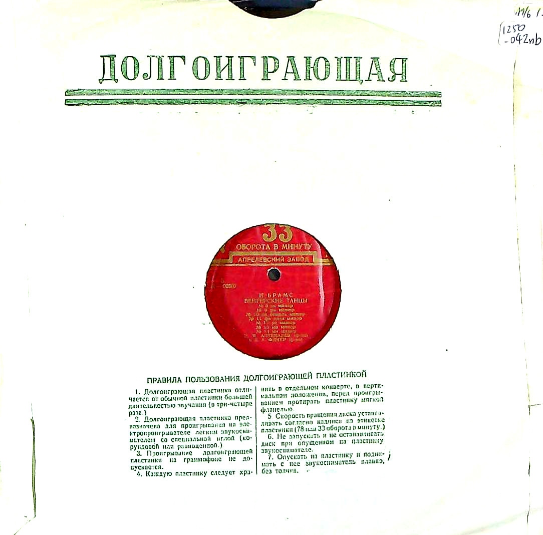 商品コード:1250-042nb[MELODIYA] I.アプテカレフ, Y.フリエール(pf) / ブラームス:ハンガリー舞曲集~14曲