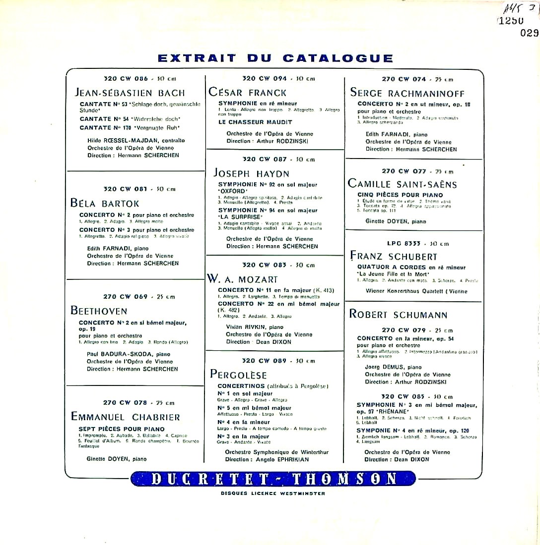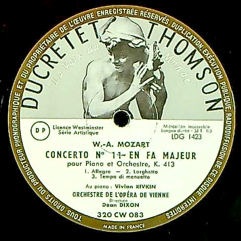 商品コード:1250-029[Ducretet Thomson] V.リフキン(pf) D.ディクソン指揮ウィーン国立歌劇場o. / モーツァルト:Pf協奏曲11番K.413, Pf協奏曲22番K.482