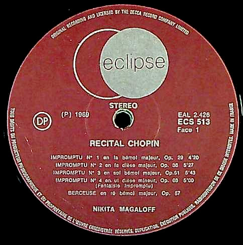 商品コード:REG-1954p[仏DECCA] N.マガロフ(pf) / ショパン:即興曲1番Op.29,2番Op.36,3番Op.51,4番Op.66,子守唄Op.57 他