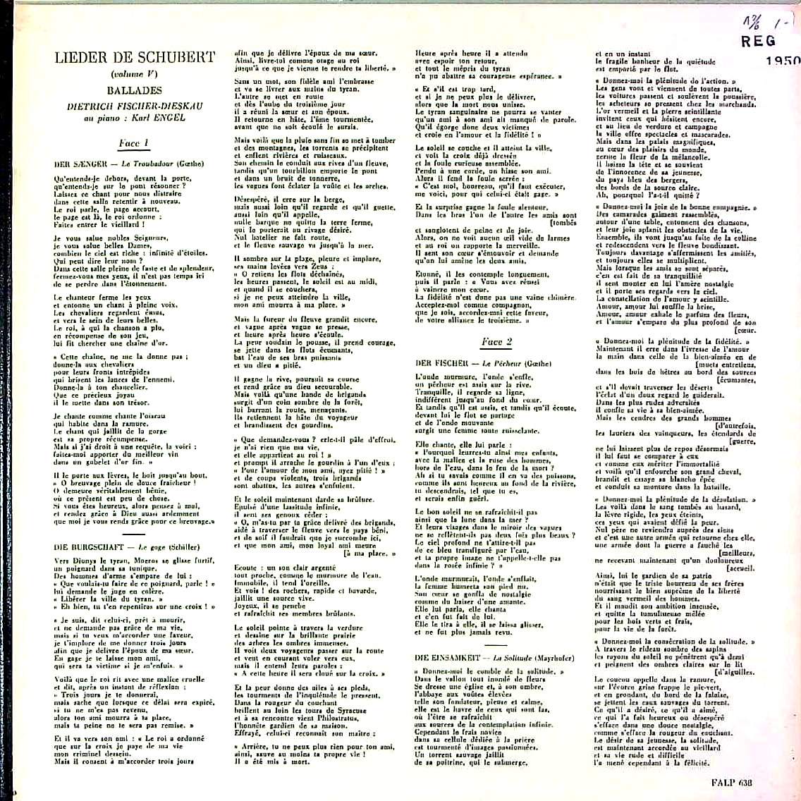 商品コード:REG-1950[仏La Voix De Son Maître] D.フィッシャー・ディースカウ(br) K.エンゲル(pf) / シューベルト歌曲集Vol.5