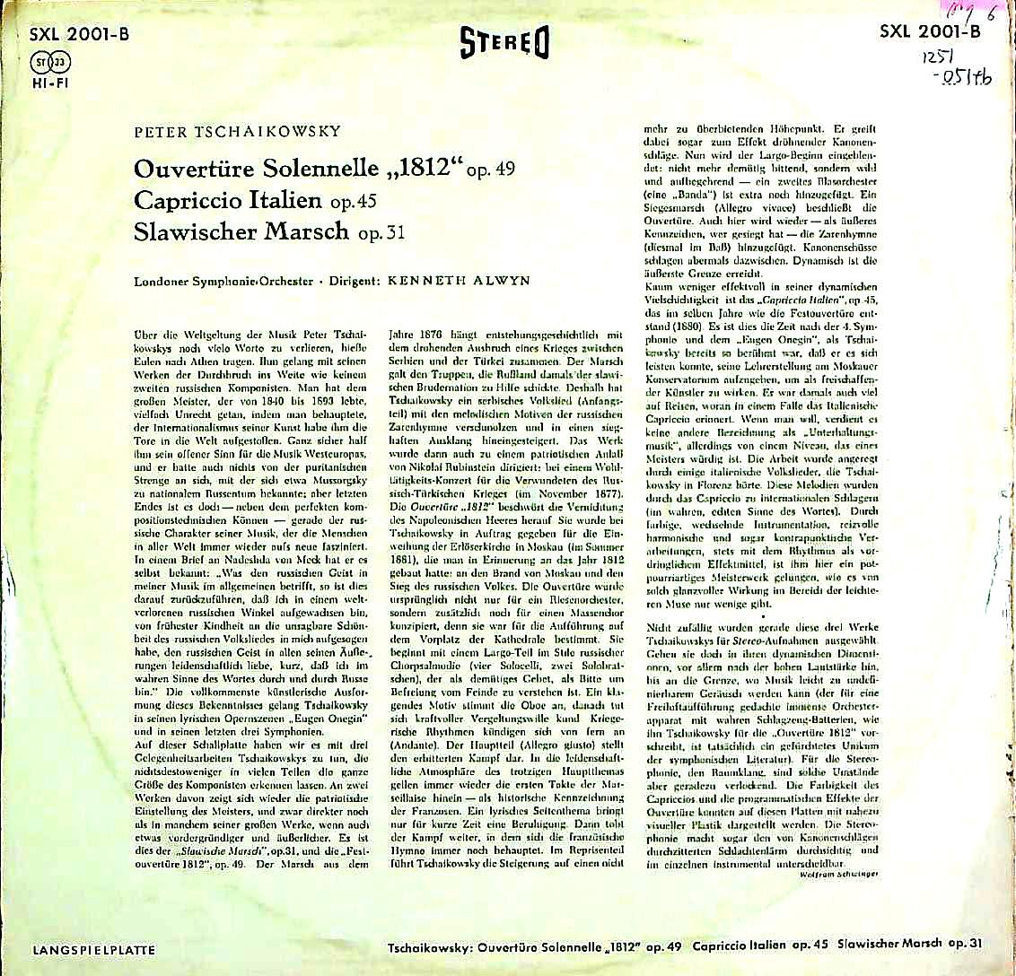 商品コード:1251-051tb[DECCA] K.オールウィン指揮ロンドンso. イギリス近衛グレナディア・ガーズ軍楽隊/ チャイコフスキー:1812年序曲, イタリア奇想曲, スラブ行進曲