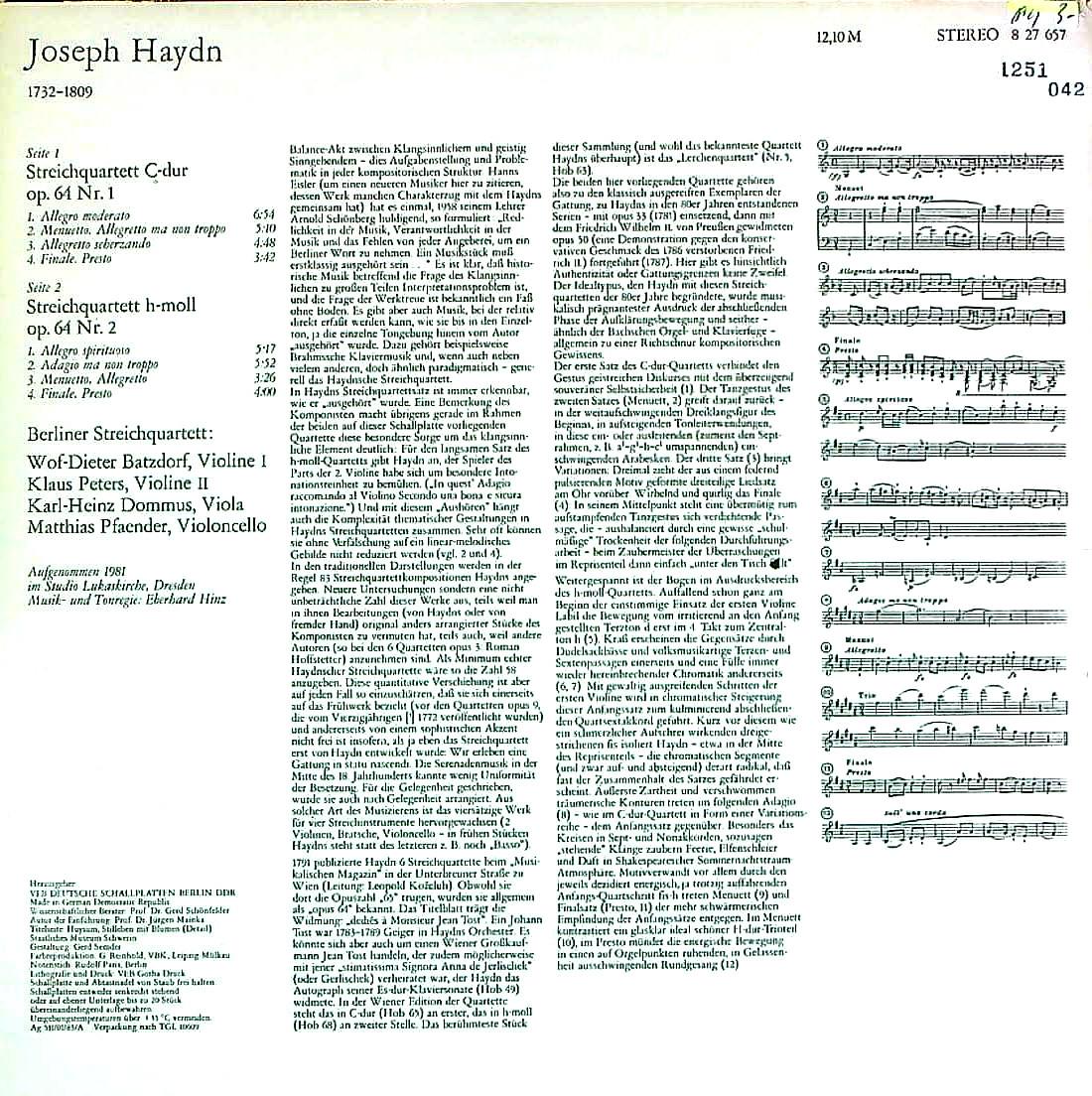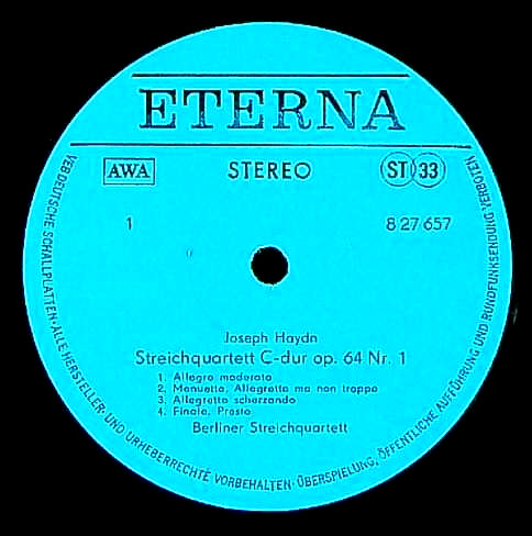商品コード:1251-042n[ETERNA] ベルリンQt. (W.D.バッツドルフ, K.ペータース(vn) K.H.ドムス(va) M.プフェンダー(vc)) / ハイドン:弦楽四重奏曲Op.64-1, 2