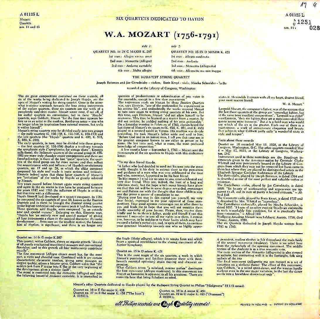 商品コード:1251-028[PHILIPS] ブダペストQt. / モーツァルト:SQ14番K.387「春」, 15番K.421
