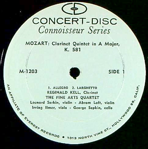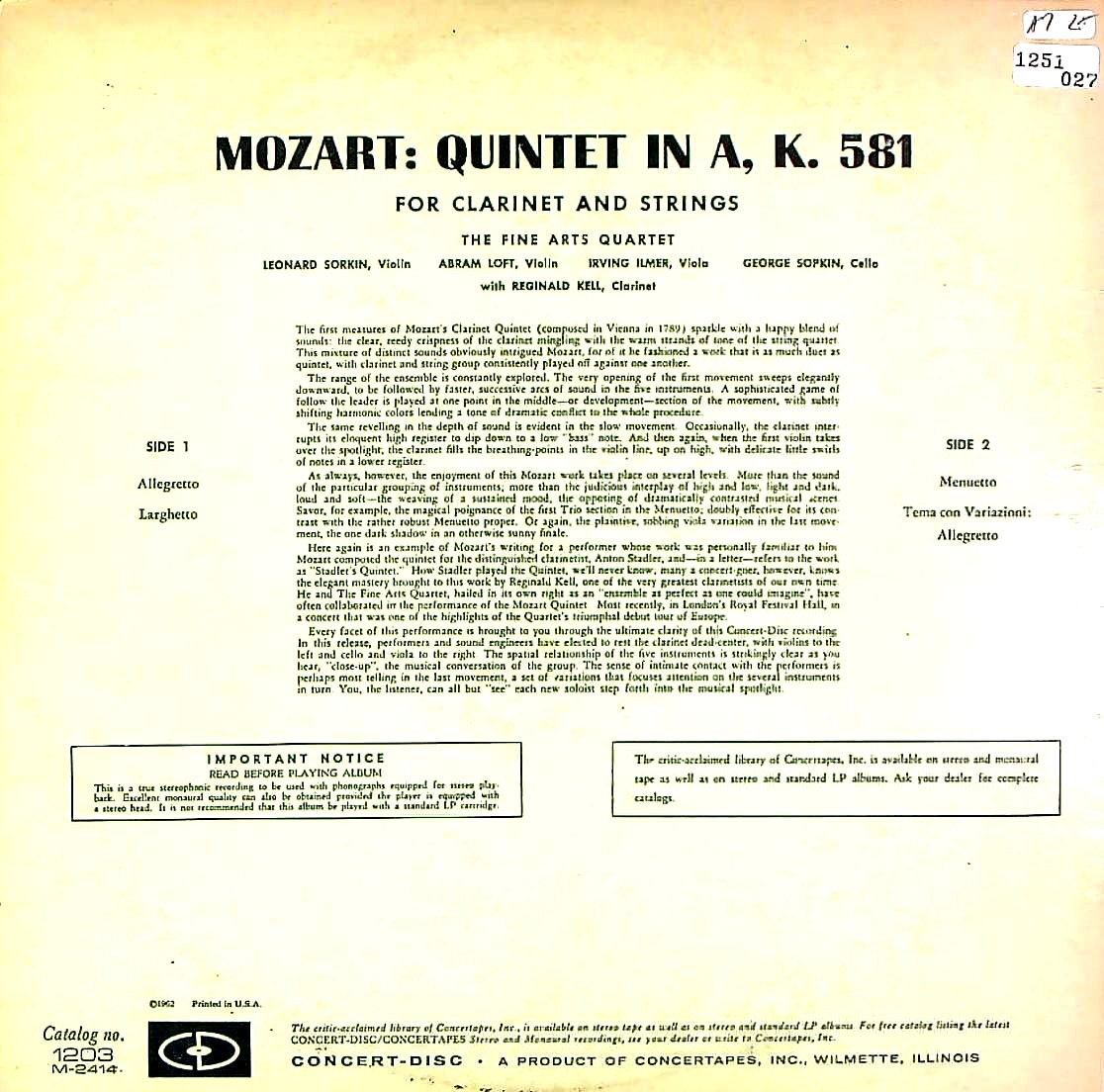 商品コード:1251-027[CONCERT DISC] R.ケル(cl) ファイン・アーツQt. / モーツァルト:Cl五重奏曲K.581