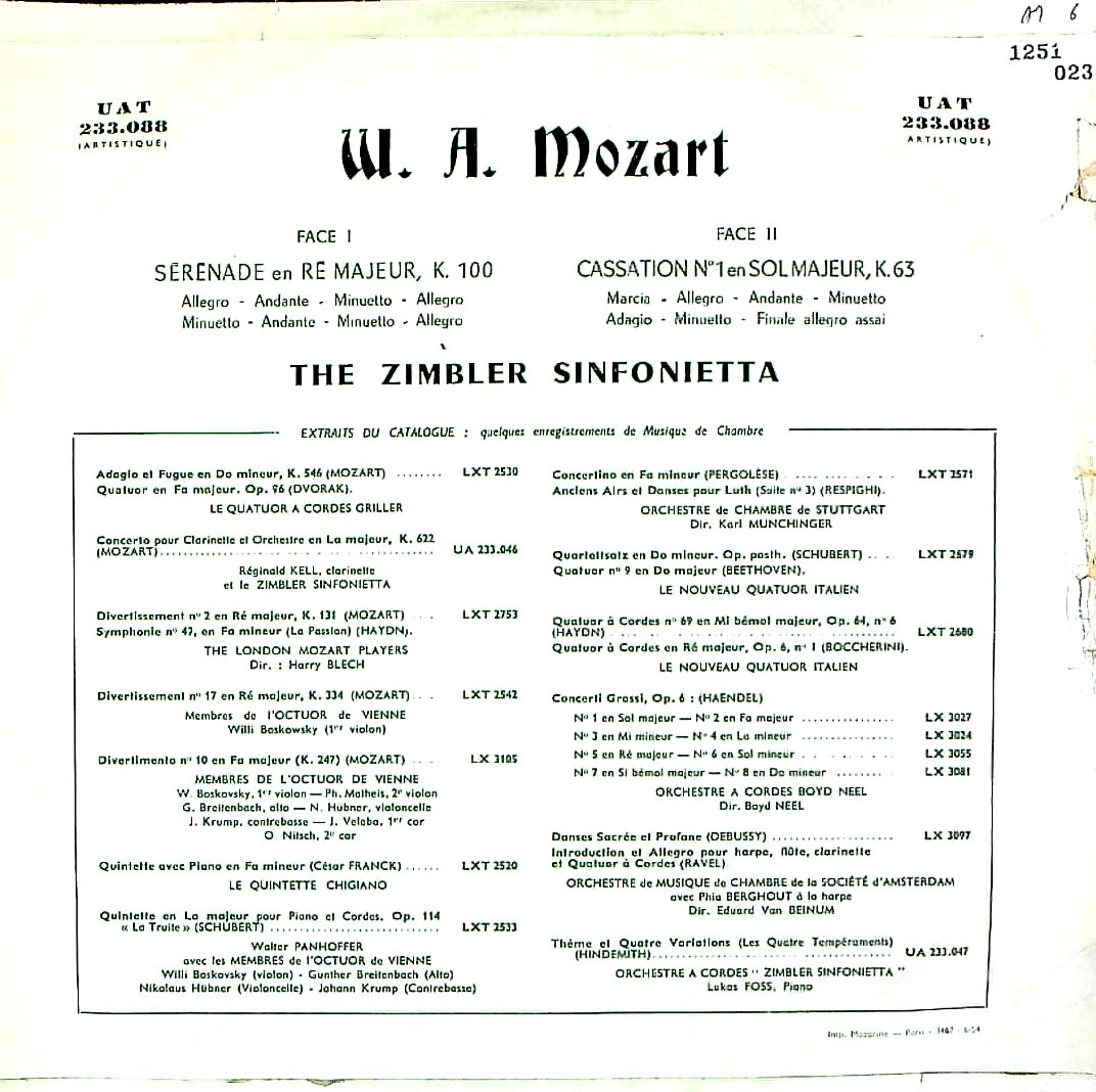 商品コード:1251-023[DECCA] ジンブラー・シンフォニエッタ / モーツァルト:セレナーデ1番K.100, カッサシオン1番K.63