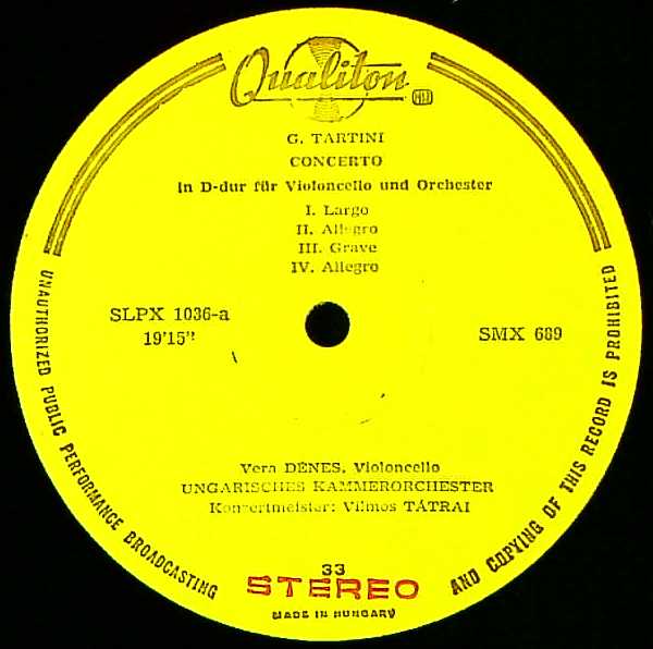 演奏者:V.タートライ指揮ハンガリー室内o. V.デーネシュ(vc)