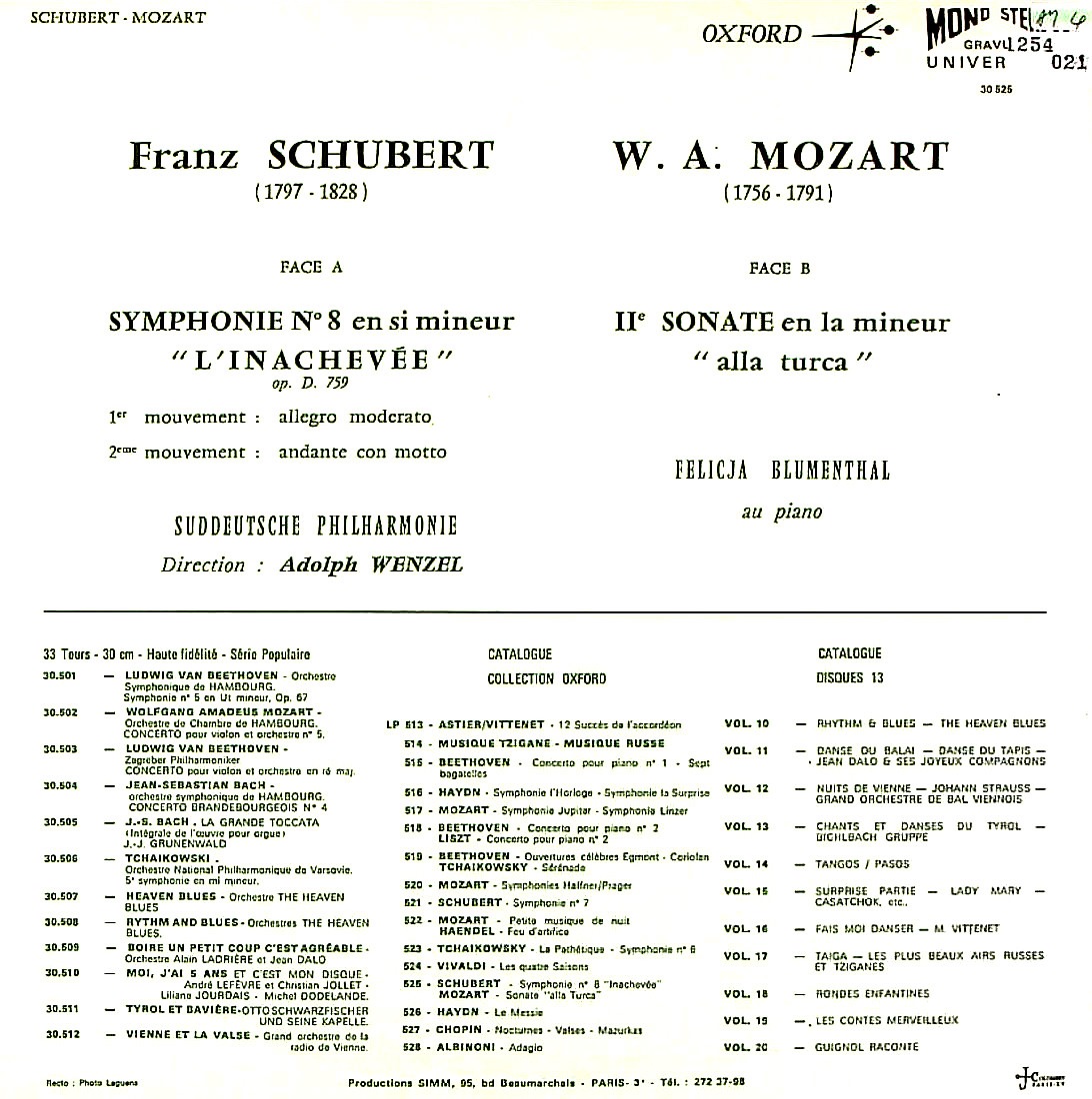商品コード:1254-021p[OXFORD] A.ヴェンツェル指揮南ドイツpo. F.ブルメンタール(pf) / シューベルト:交響曲8番「未完成」, モーツァルト:Pfソナタ11番K.331