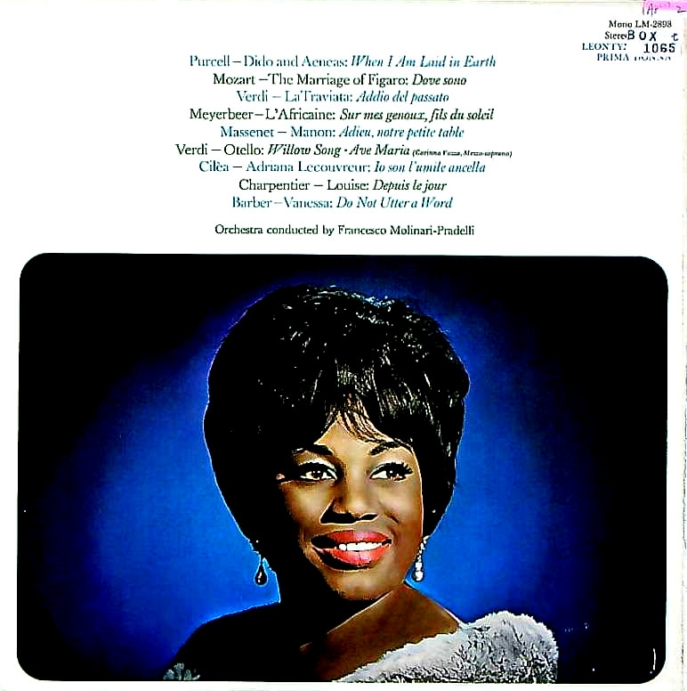 商品コード:BOX-1065t[独RCA] L.プライス(s) F.モリナーリ・プラデッリ指揮RCAイタリア歌劇場o. / 「プリマドンナ~パーセルからバーバーまでの素晴らしいソプラノ・アリア集」/パーセル, モーツァルト, ヴェルディ, マイアベーア, マスネ, ヴェルディ 他 (全9曲)