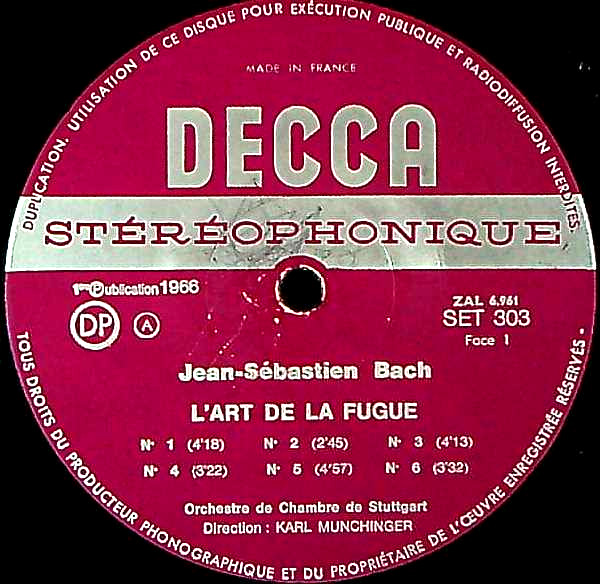 商品コード:BOX-1018p[仏DECCA] K.ミュンヒンガー指揮シュトゥットガルト室内o. / バッハ:フーガの技法B.1080(ミュンヒンガー版)