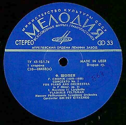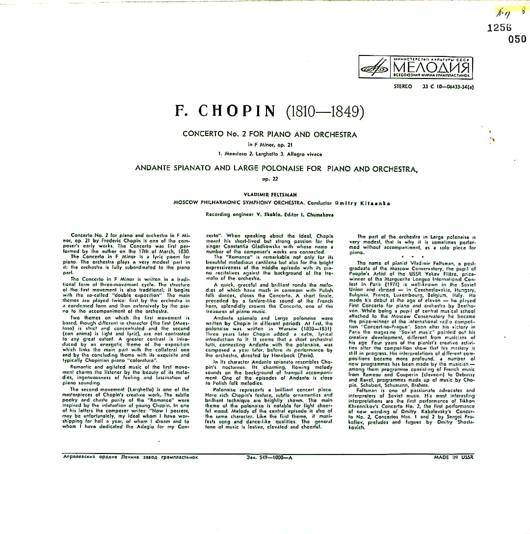 商品コード:1256-050n[MELODIYA] V.フェルツマン(pf) D.キタエンコ指揮モスクワpo. / ショパン:Pf協奏曲2番Op.21, アンダンテ・スピアナートOp.22