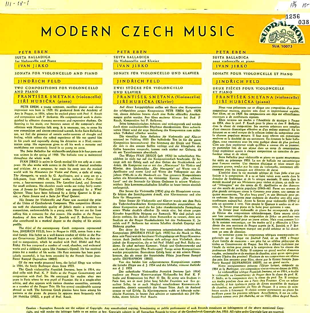 商品コード:1256-038[SUPRAPHON] F.スメタナ(vc) J.フビチュカ(pf) / チェコの近代チェロ音楽/ペトル・エベン, イヴァン・イルコ, イィンドジフ・フェルド