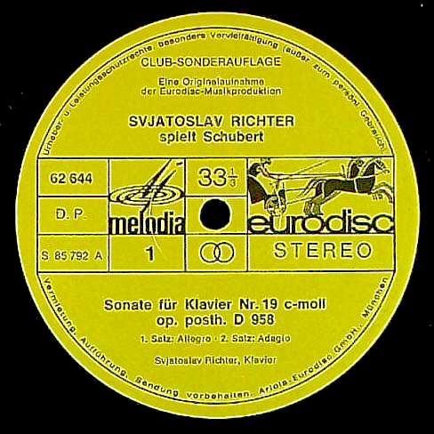 商品コード:REG-2031t[独EURODISC] S.リヒテル(pf) / シューベルト:Pfソナタ19番D.958, 即興曲Op.142-2