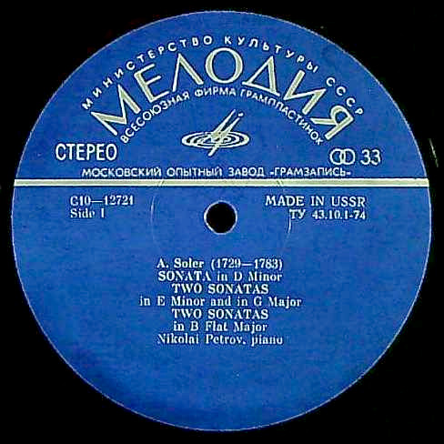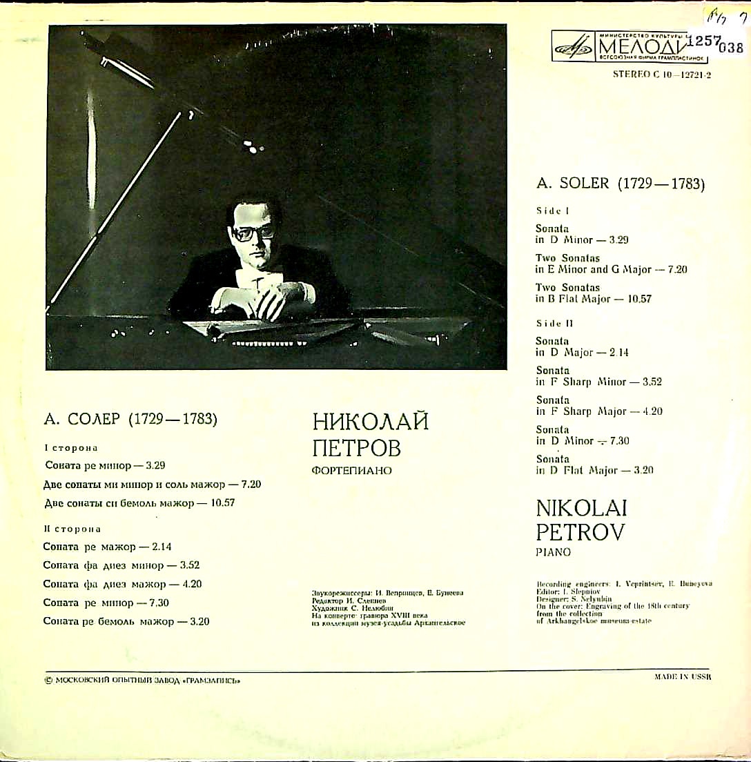 商品コード:1257-038n[MELODIYA] N.ペトロフ(pf) / ソレール:ソナタ集(10曲)