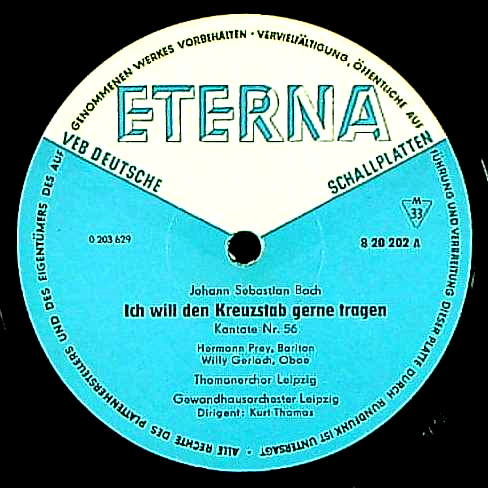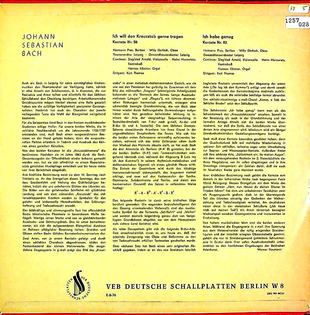 商品コード:1257-028n[ETERNA] K.トーマス指揮ゲヴァントハウスo. 聖トーマス教会cho. H.プライ(br) W.ゲラッチ(ob) H.ケストナー(org) S.アーノルド(vc) H.モラヴイッツ(cb) / バッハ:カンタータ56番, 82番
