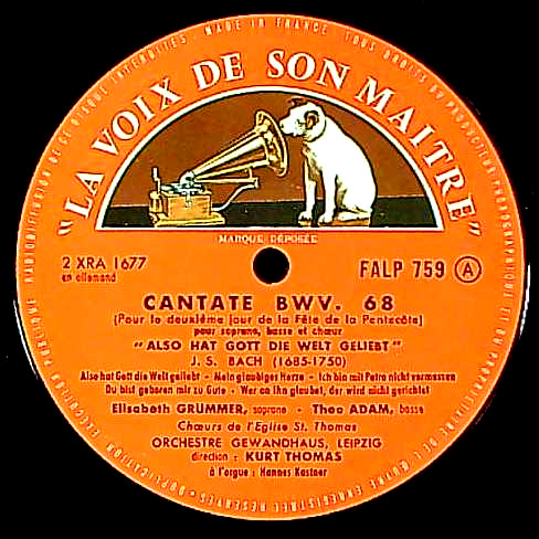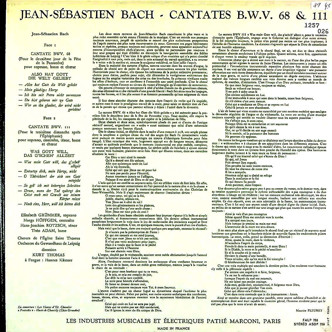 商品コード:1257-026[La Voix De Son Maître] K.トーマス指揮ゲヴァントハウスo. 聖トーマス教会cho. E.グリュンマー(s) M.ヘフゲン(ca) H.J.ロッチュ(t) T.アダム(bs) H.ケストナー(org) / バッハ:カンタータ68番, カンタータ111番