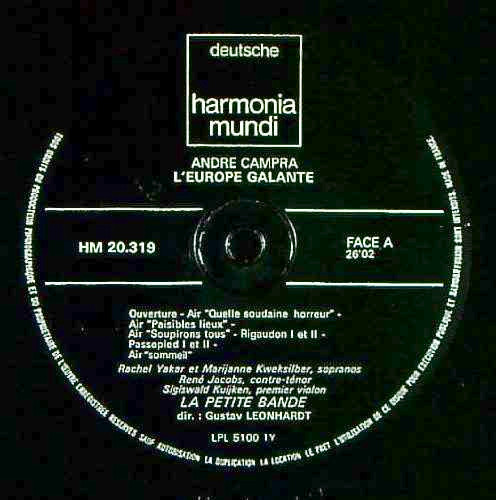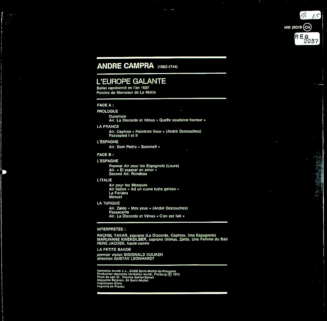 商品コード:REG-2057[独Harmonia Mundi] G.レオンハルト指揮ラ・プティ・バンド, S.クイケン(vn) R.ヤーコプス(ct), 他 / カンプラ:オペラ・バレ「華麗なるヨーロッパ」