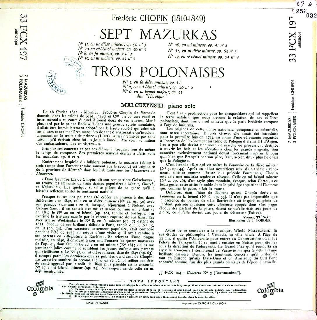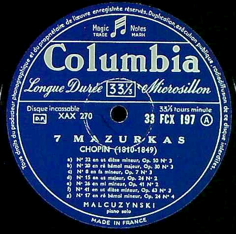 商品コード:1258-032[COLUMBIA] W.マウツジンスキ(pf) / ショパン:ポロネーズとマズルカ集(旧録音)/マズルカ(8曲), ポロネーズ(3曲/2・5・6番)