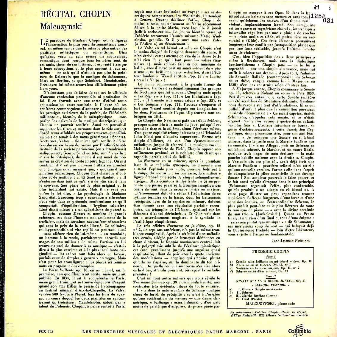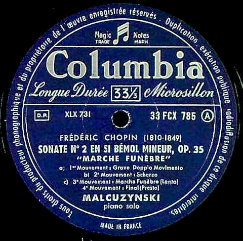 商品コード:1258-031[COLUMBIA] W.マウツジンスキ(pf) / ショパン・レシタル/Pfソナタ2番, スケルツォ3番, 華麗なる大円舞曲, 夜想曲5番, 夜想曲13番