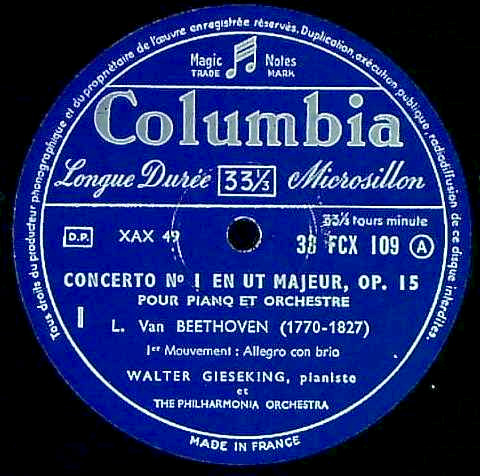 商品コード:1258-022[COLUMBIA] W.ギーゼキング(pf) フィルハーモニアo. / ベートーヴェン:Pf協奏曲1番Op.15