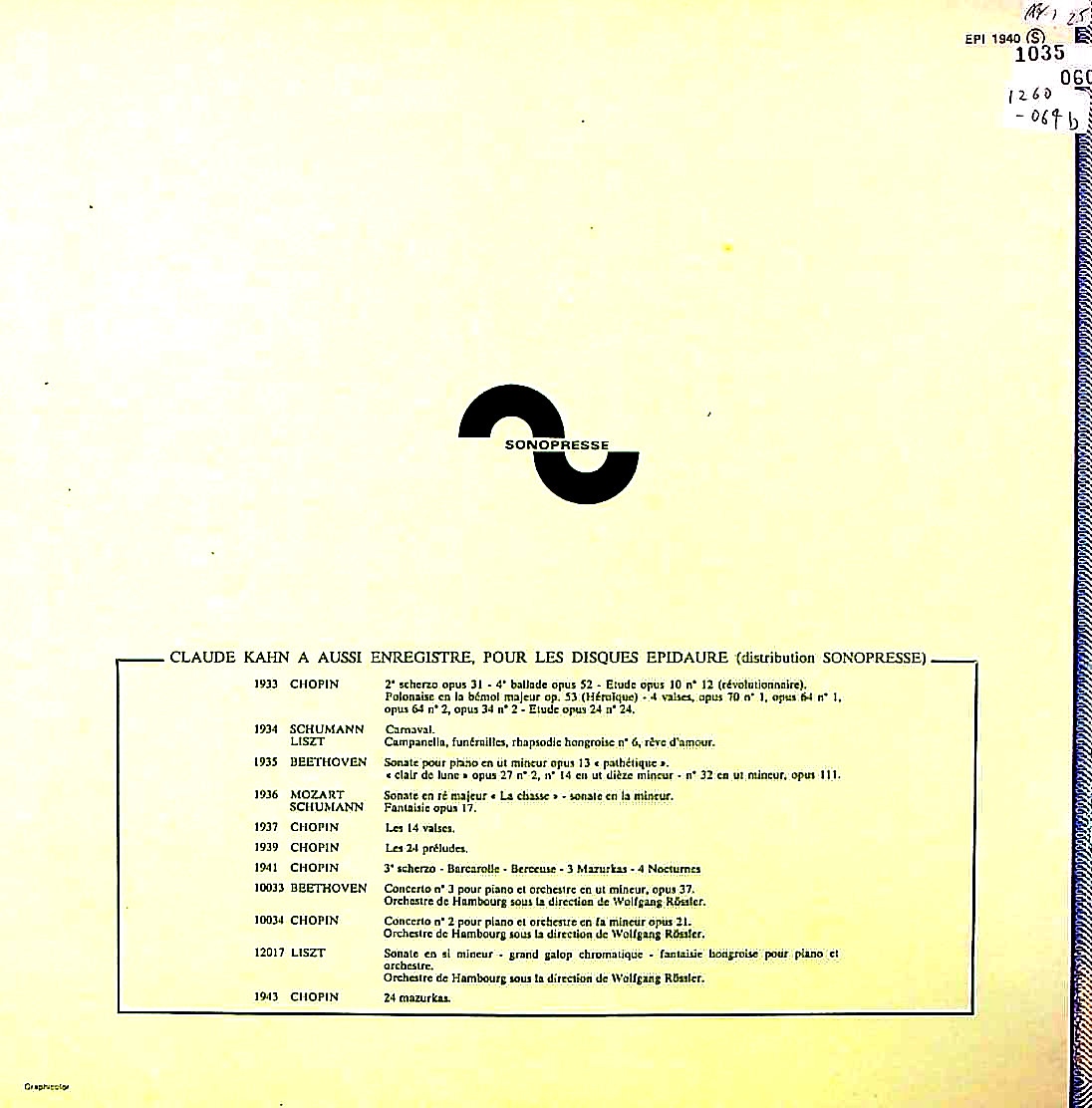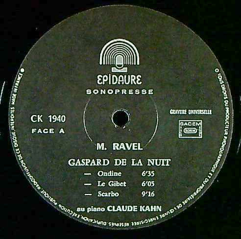 商品コード:1260-064b[EPIDAURE] C.カーン(pf) / ラヴェル:夜のガスパール, フォーレ:主題と変奏, 夜想曲6番