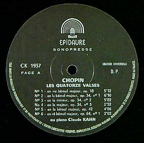 商品コード:1260-062b[EPIDAURE] C.カーン(pf) / ショパン:14のワルツ