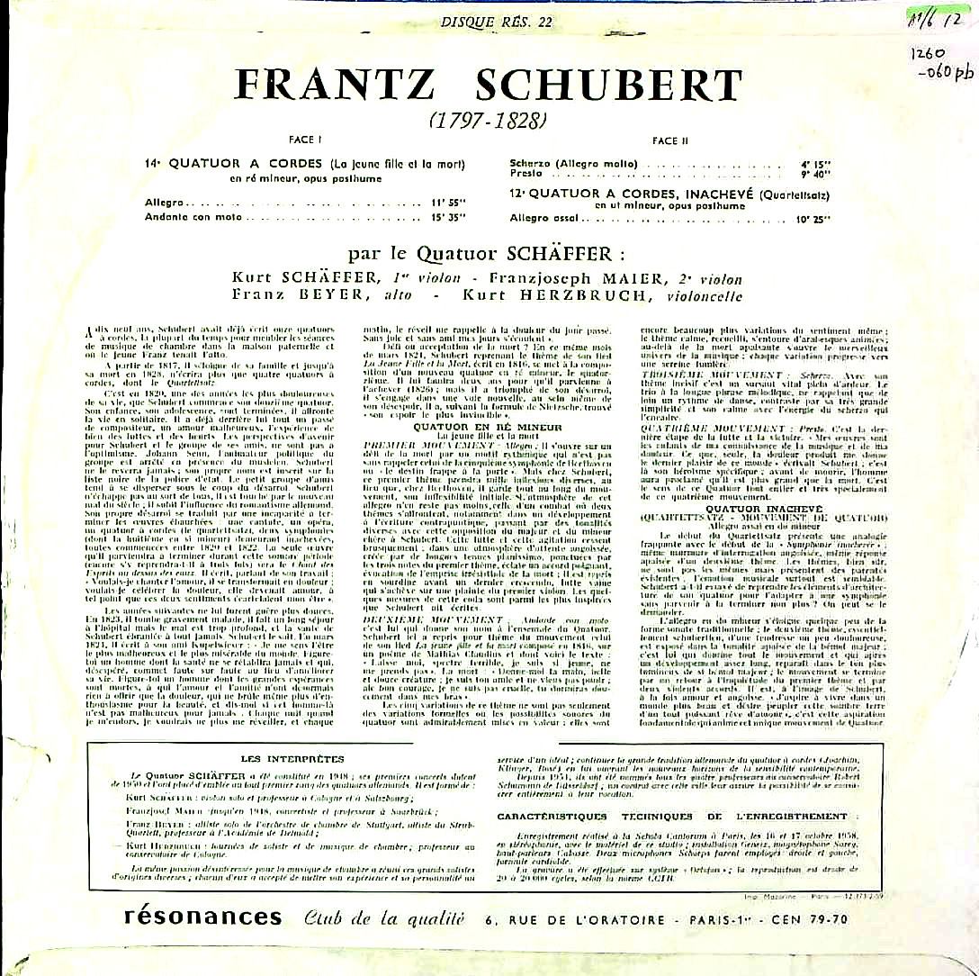 商品コード:1260-060pb[Résonances] シェッファーQt. / シューベルト:SQ14番「死と乙女」, 12番「四重奏断章」