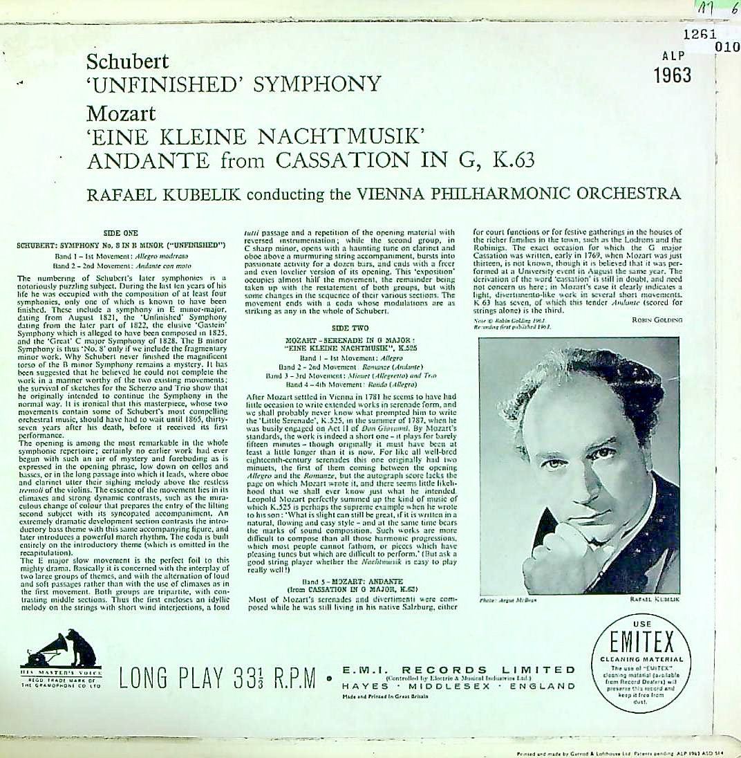 商品コード:1261-010p[His Master's Voice ] R.クーベリック指揮ウィーンpo. / シューベルト:交響曲8番「未完成」, モーツァルト:アイネ・クライネK.525, カッサシオンK.63~アンダンテ