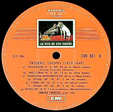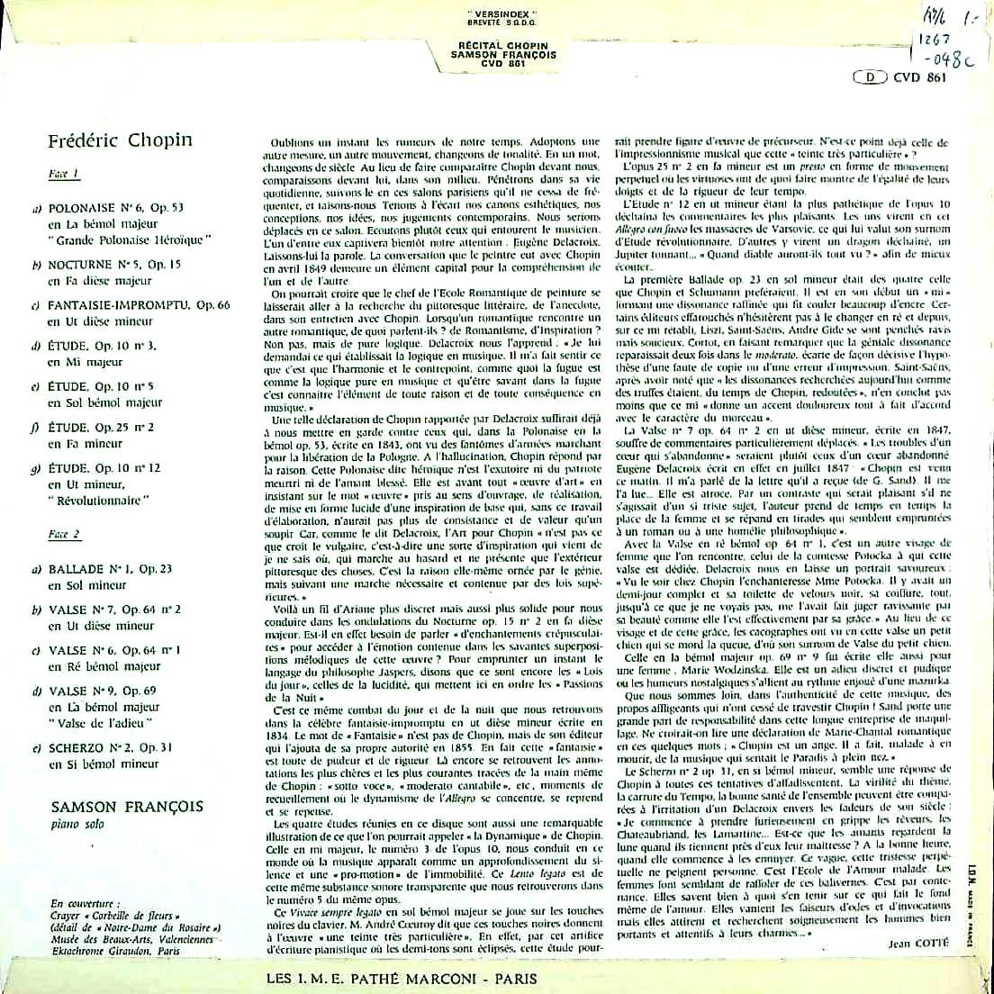 商品コード:1262-048c[La Voix De Son Maître] S.フランソワ(pf) / ショパン:英雄ポロネーズ, 幻想即興曲, バラード1番, スケルツォ2番, 夜想曲, 練習曲(4曲), ワルツ(3曲)
