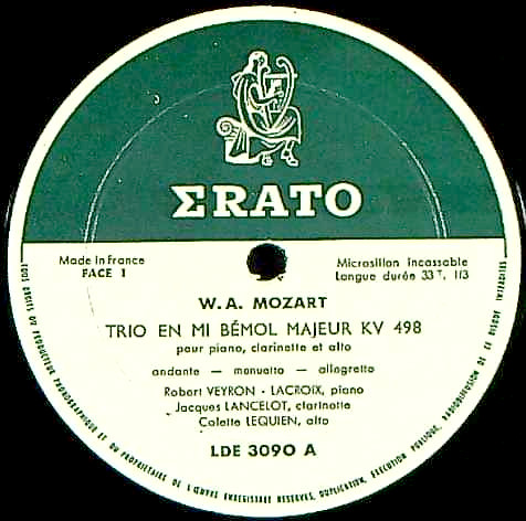 商品コード:1262-016b[ERATO] R.ヴェイロン・ラクロワ(pf) J.ランスロ(cl) R.ジャンドル(vn) C.ルキアン(va) R.ベー(vc) / Clトリオ集/モーツァルト:K.498, ベートーヴェン:4番Op.11, アレグレット WoO.39