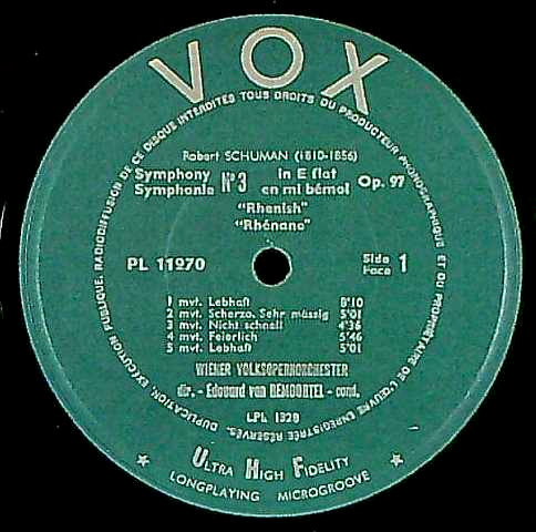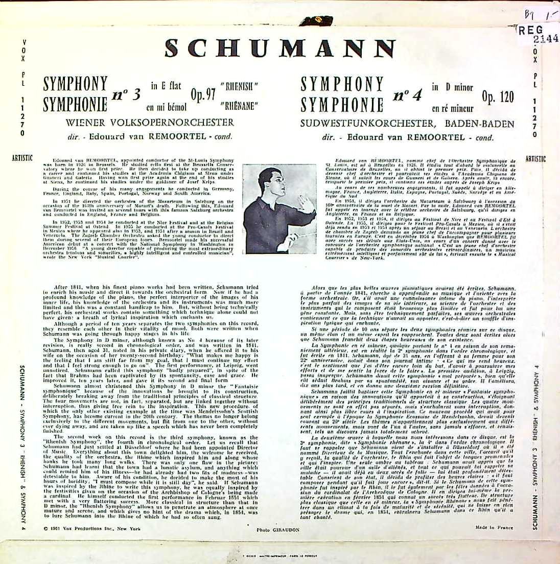商品コード:REG-2144[仏VOX] E.v.ルモーテル指揮ウィーン・フォルクスオーパーo./バーデンバーデン南西ドイツ放送so. / シューマン:交響曲3番Op.97「ライン」, 交響曲4番Op.120