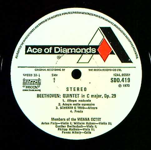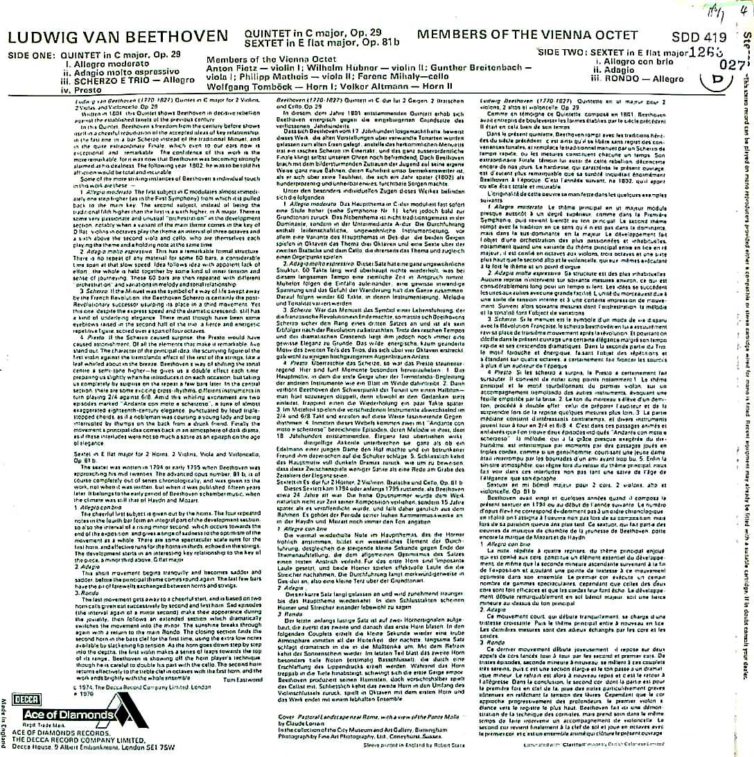 商品コード:1263-027p[DECCA] ウィーン八重奏団メンバー / ベートーヴェン:弦楽五重奏曲Op.29, 六重奏曲Op.81b