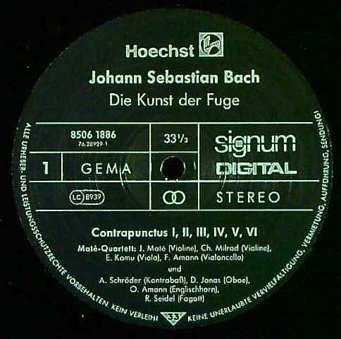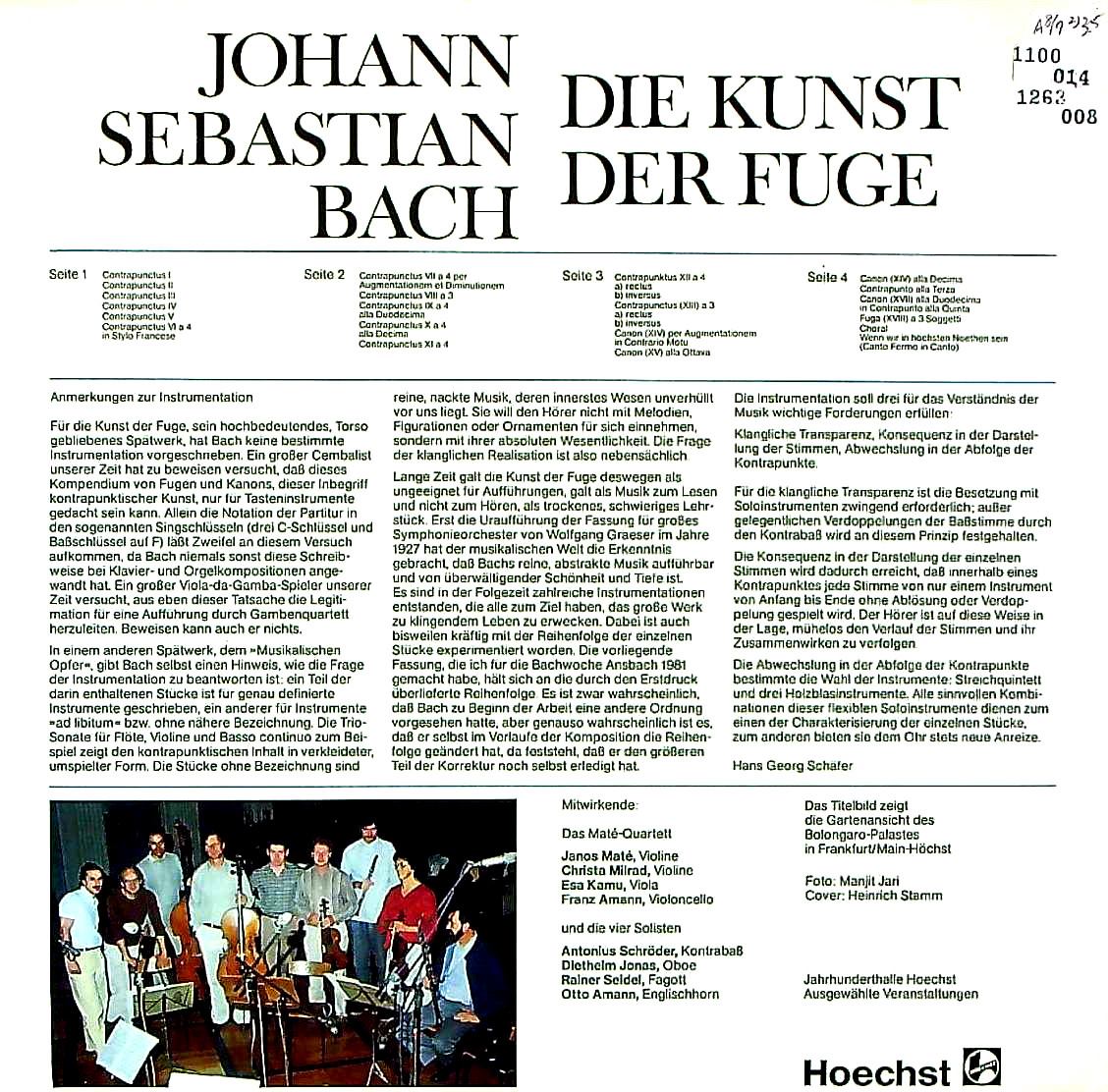 商品コード:1263-008[HOECHST] マーテQt. A.シェーダー(cb) D.ヨナス(ob) R.ザイデル(fg) O.アマン(hr) / バッハ:フーガの技法B.1080