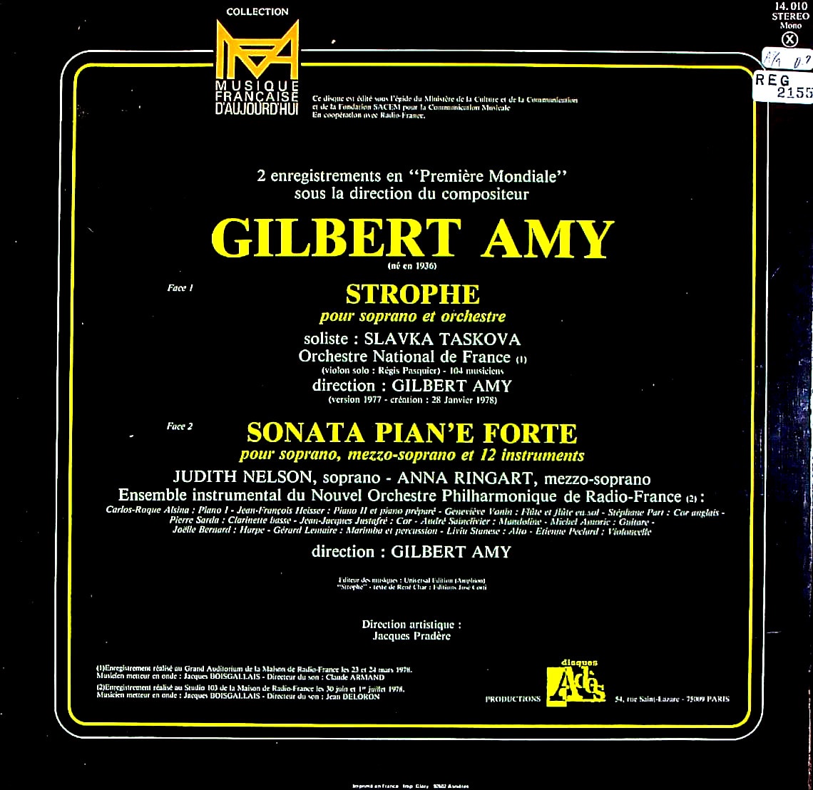 商品コード:REG-2155[仏ADÈS] G.アミ指揮フランス国立o./新フランス放送po.器楽Ens. S.タスコワ(s) 他 / アミ:STROPHE, ピアノとフォルテのソナタ