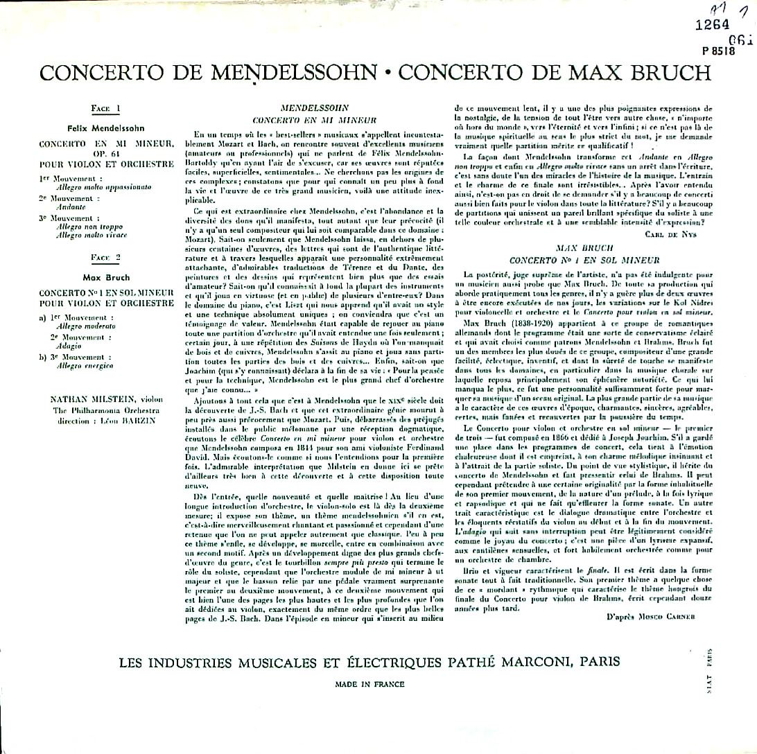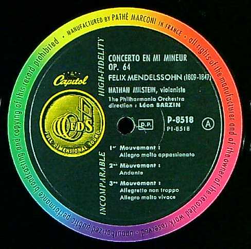 商品コード:1264-061[CAPITOL] N.ミルシテイン(vn) L.バージン指揮フィルハーモニアo. / メンデルスゾーン:Vn協奏曲Op.64, ブルッフ:Vn協奏曲1番Op.26