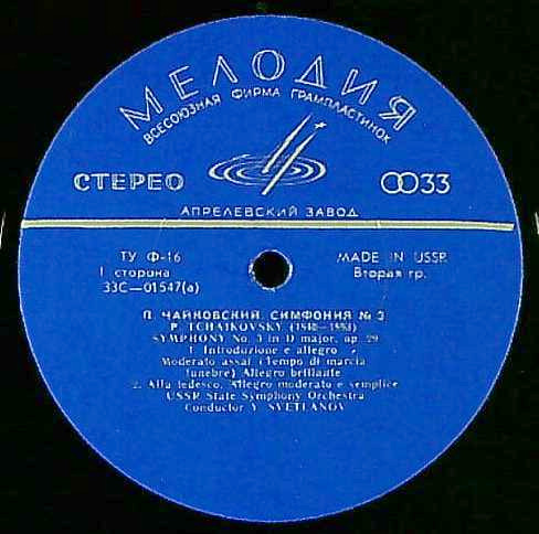 商品コード:1264-051n[MELODIYA] E.スヴェトラーノフ指揮ソビエト国立so. / チャイコフスキー:交響曲3番Op.29「ポーランド」