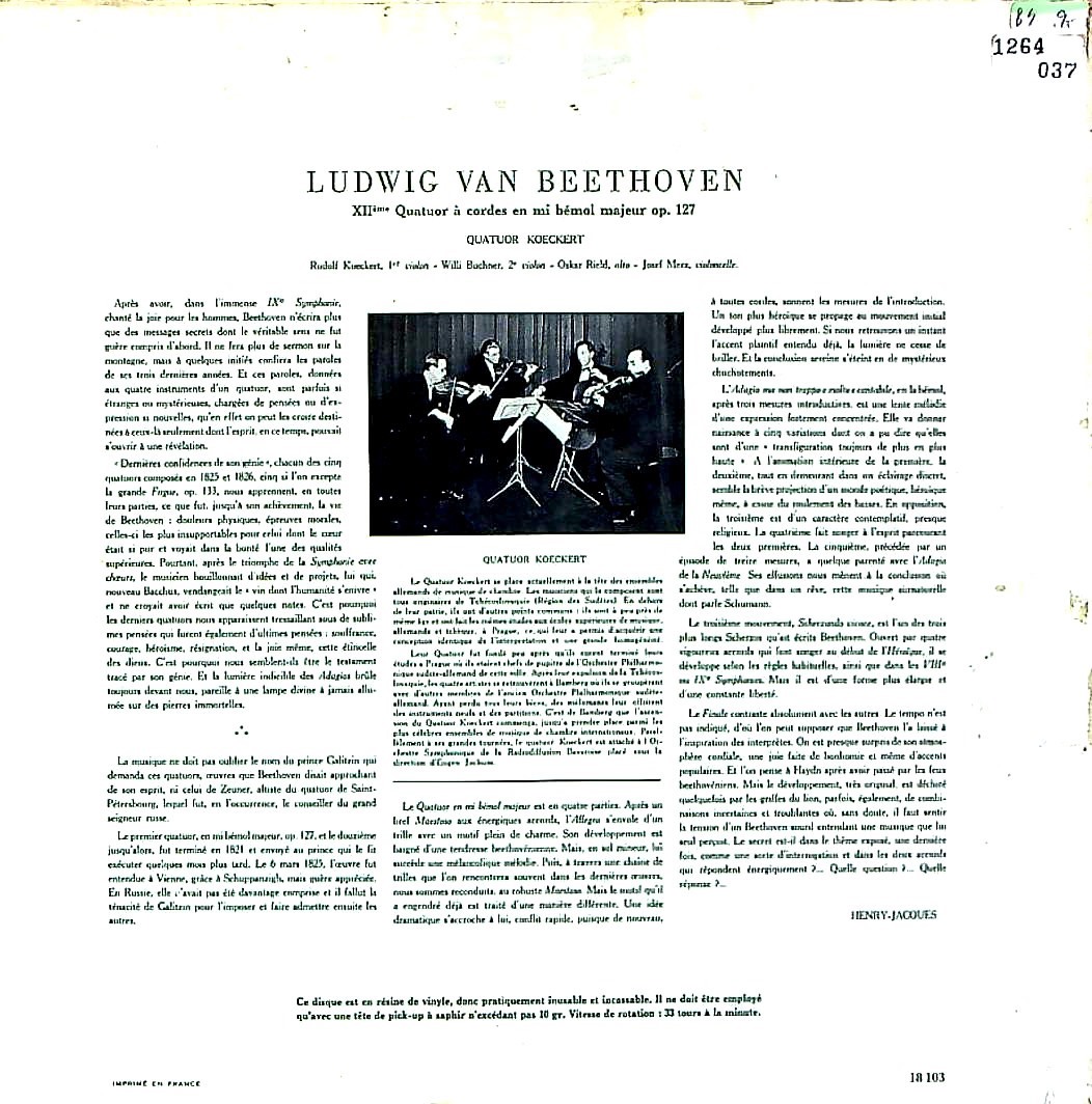 商品コード:1264-037p[DGG] ケッケルトQt. / ベートーヴェン:弦楽四重奏曲12番Op.127