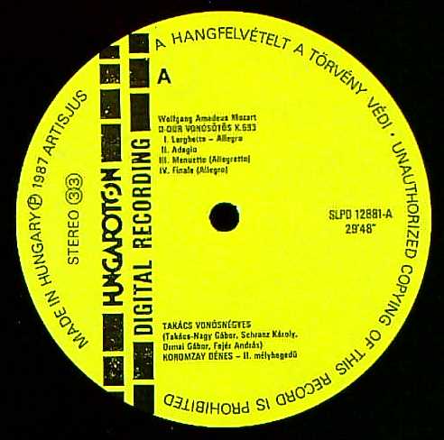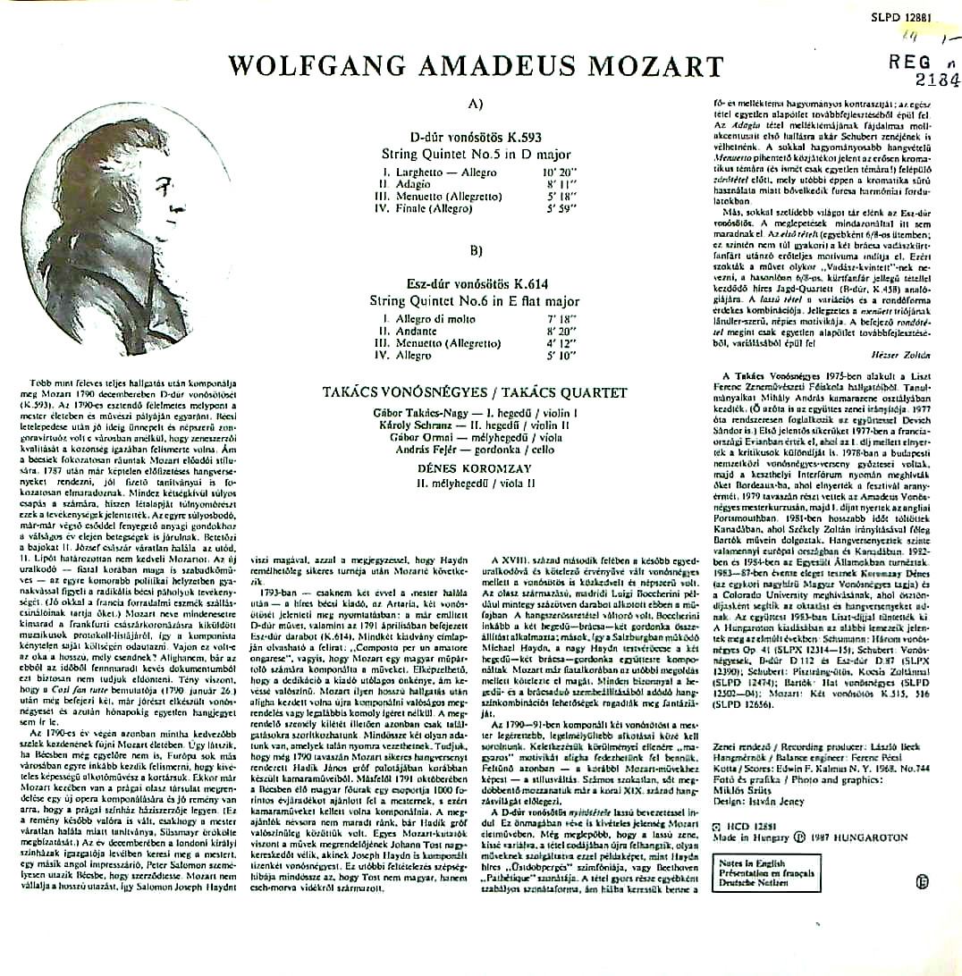 商品コード:REG-2184n[洪HUNGAROTON] タカーチQt. D.コロムザイ(va) / モーツァルト:弦楽五重奏曲5番K.593, 6番K.614