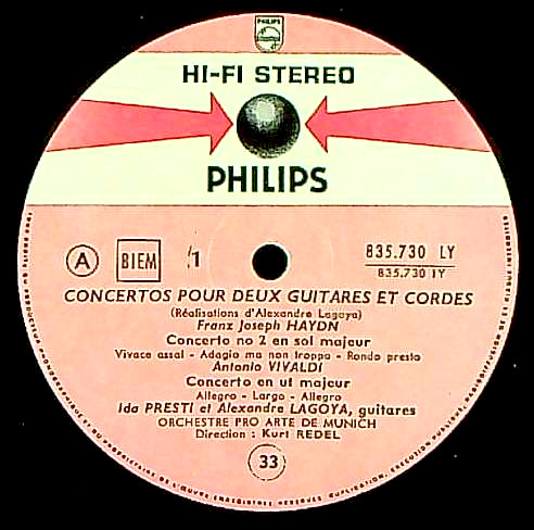 商品コード:1265-047[PHILIPS] I.プレスティ・A.ラゴヤ・デュオ(gt) K.レーデル指揮ミュンヘン・プロ・アルテo. / 2Gt協奏曲集/ハイドン, ヴィヴァルディ, マルチェルロ