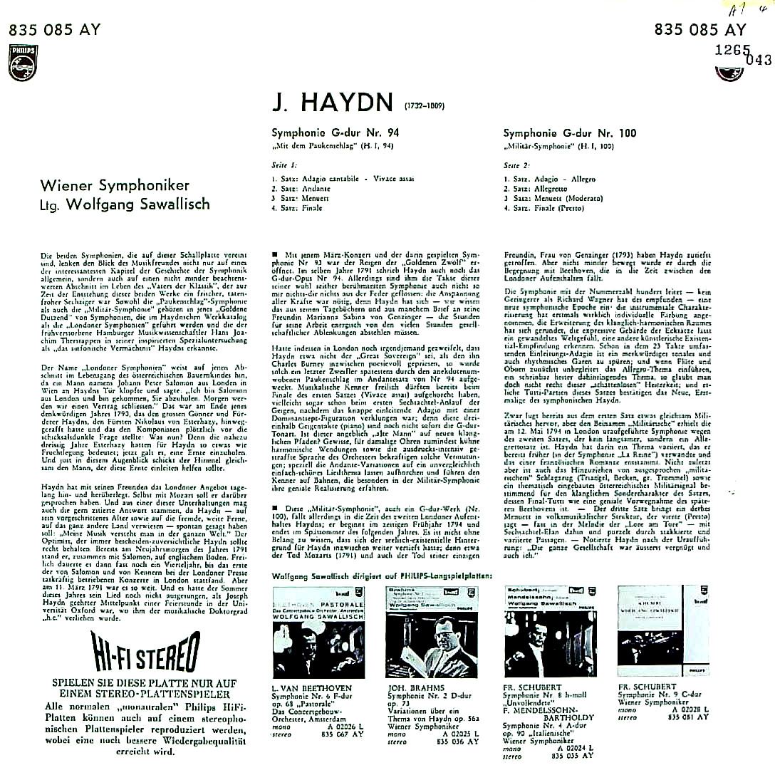 商品コード:1265-043n[PHILIPS] W.サヴァリッシュ指揮ウィーンso. / ハイドン:交響曲94番「驚愕」, 100番「軍隊」