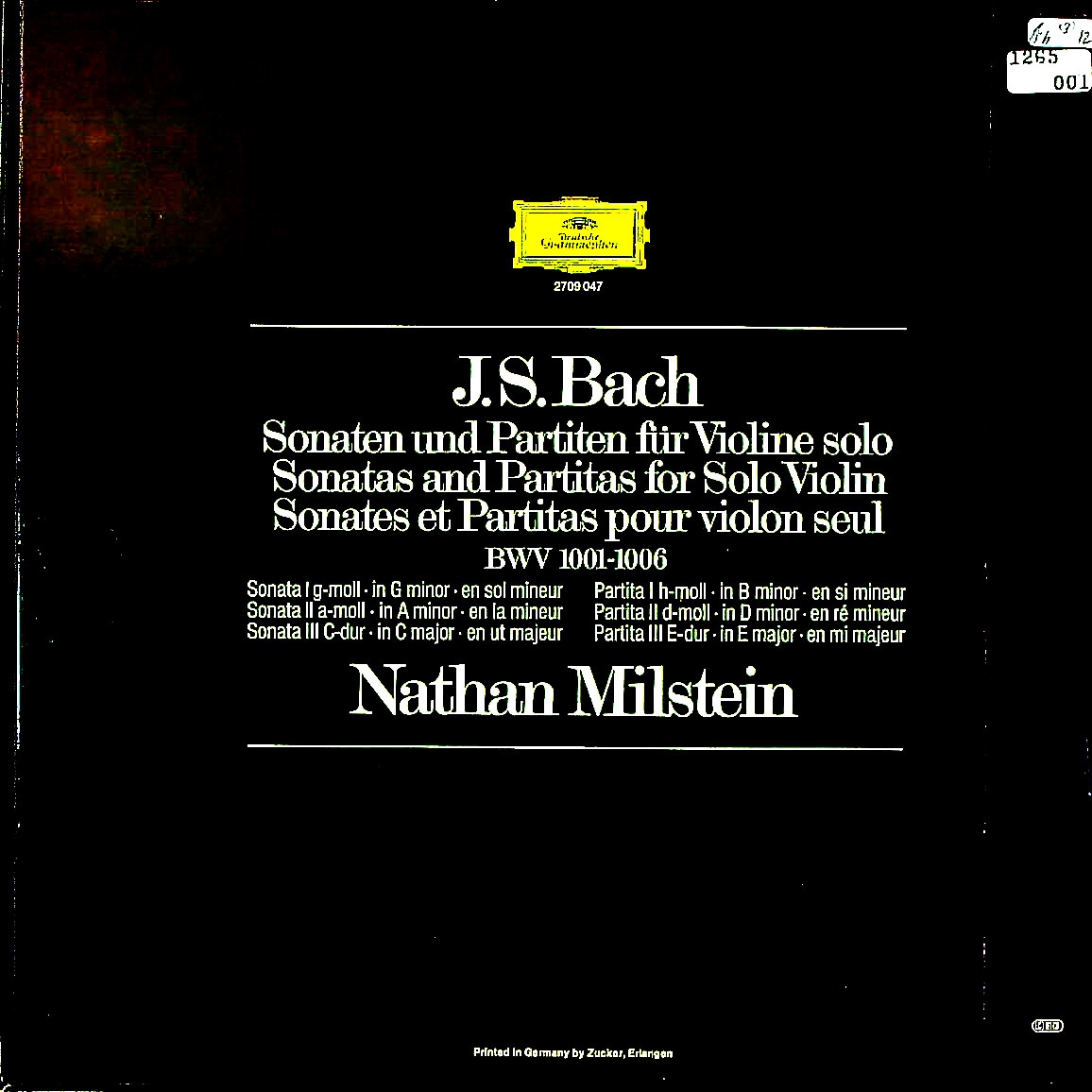 商品コード:1265-001[DGG] N.ミルシテイン(vn) / バッハ:無伴奏Vnソナタとパルティータ(全6曲)B.1001~1006