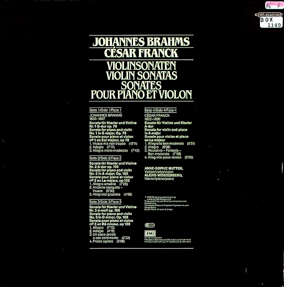商品コード:BOX-1149t[独ELECTROLA] A.S.ムター(vn) A.ワイセンベルク(pf) / 「Vnソナタ集」/ブラームス:1番Op.78, 2番Op.100, 3番Op.108, フランク