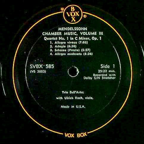 商品コード:BOX-1122t[米VOX] ベル・アルテ三重奏団, U.コッホ(va)/バンベルクPf五重奏団/コレギウム・コン・バッソ / 「メンデルスゾーン室内楽曲集Vol.3」