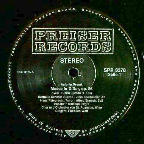 商品コード:BOX-1108[墺PREISER] F.ヴォルフ指揮聖アウグスティン教会o.cho., E.ウルマン(org) A.スラメーク(br) J.シュタルケル(vc) 他 / ドヴォルザーク:ミサ曲, Vc協奏曲, スメタナ:「わが祖国」(全曲) 他