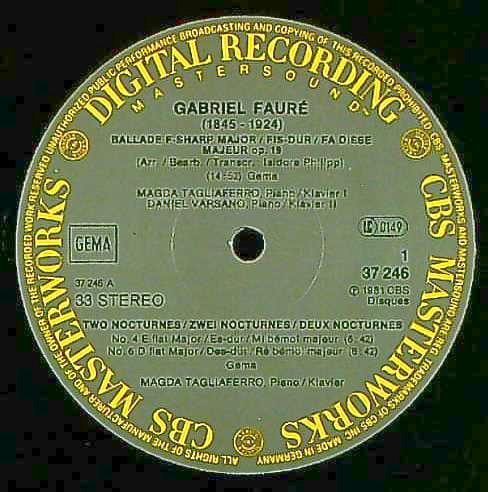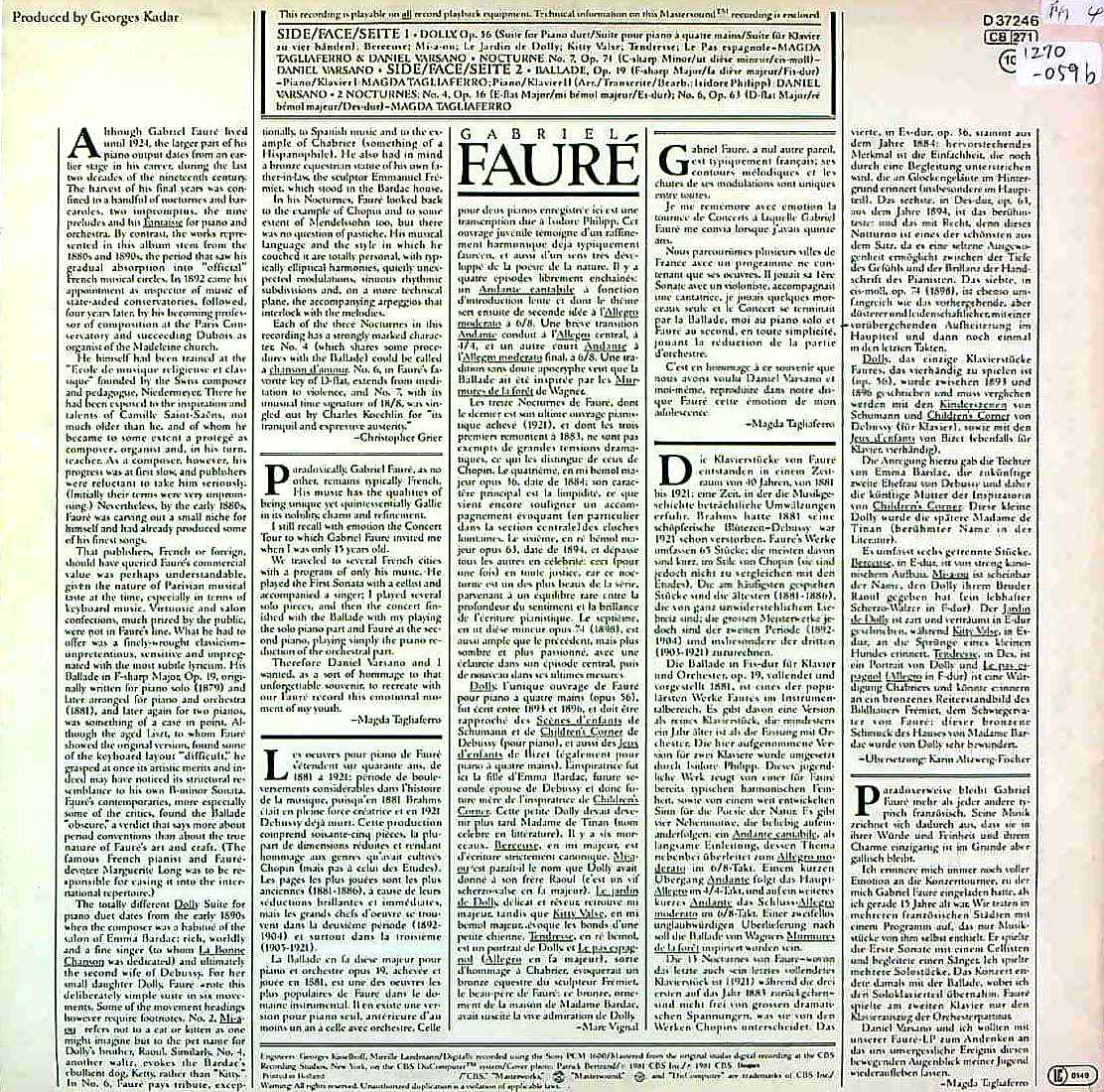 商品コード:1270-059b[CBS] M.タリアフェロ, D.ヴァルサーノ(pf) / フォーレ:ドリーOp.56, バラードOp.19, 夜想曲4番Op.36, 6番Op.63, 7番Op.74