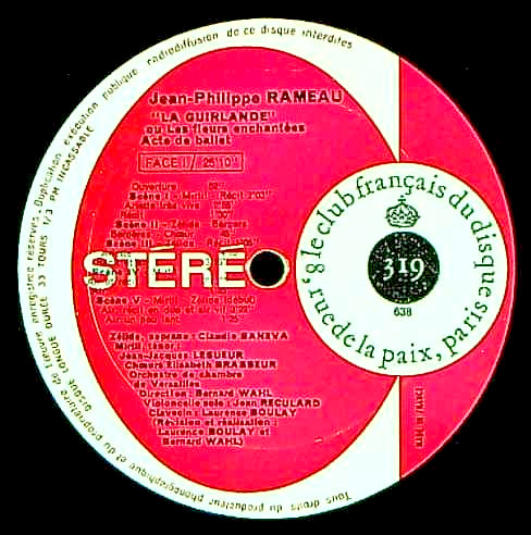 商品コード:1270-042[Le Club Français Du Disque] B.ヴァール指揮ヴェルサイユ室内o. C.サネーヴァ(s) J.J.ルシュール(t) L.ブーレイ(cemb) 他 / ラモー:アクト・ド・バレ「花飾り、または魔法の花」